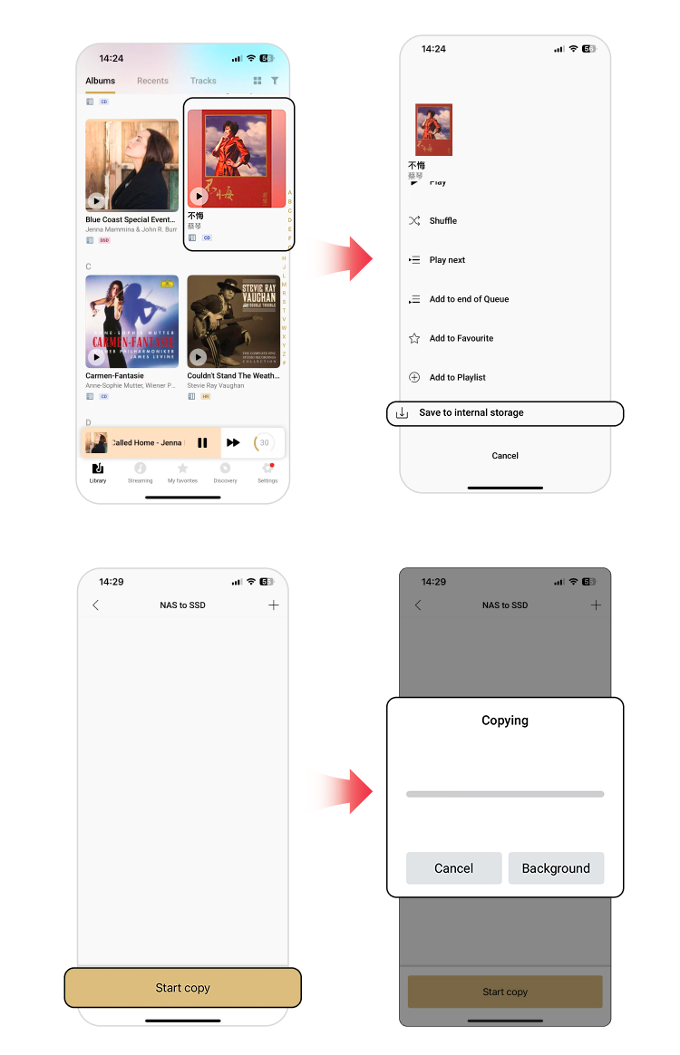 Before the update, the music copy function can only be done in Resource settings. This new function enables you to copy albums directly in the Library.