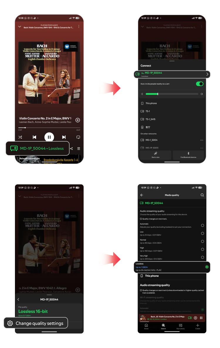 ①Before enabling lossless quality, please ensure your Matrix Audio device is connected via Spotify Connect.