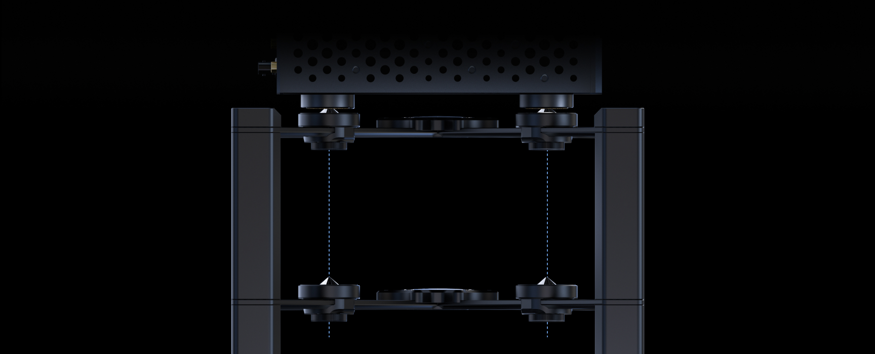 To ensure perfect integration between the rack and the device feet, we newly designed stainless-steel positioning cones incorporated into the rack’s sliding bases. These cones precisely fit into the center recess of the device feet, eliminating the need for repeatedly adjusting the position of the sliding bases while preserving the damping performance of the device feet. Thanks to the accurate coupling of the stainless-steel cones and the device feet, devices on the rack will not move when operating the touchscreen or buttons. Beneath each cone, a silicone air-cushion layer is added to form a dual-stage damping structure, further enhancing vibration control performance.