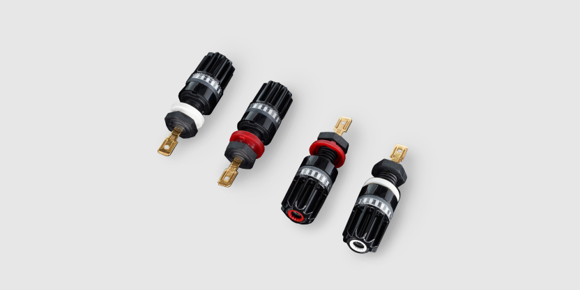 With the newly added "moment of force indicator" to the hand-tightened part of WBT-0708 Cu, the pole terminals and the spades of speaker wires are protected effectively. The terminal uses hollow design, the conductors are gold-plated on pure copper and anti-oxidation treated. To effortlessly achieve a low impedance connection with high reliability, and easily cope with instantaneous high current. Always ready to provide sufficient power for magnificent music.