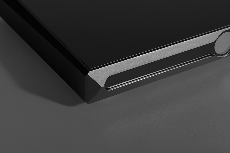 X-SABRE 3 打破了传统设计的樊笼,取而代之的极具科技感和现代感的外观设计,采用高分辨率的炫酷全彩屏幕展示设备状态信息,流媒体模式下还可以显示唱片的封面;从尺寸上来说,与上一代 X-SABRE Pro 相比,X-SABRE 3 从宽度和高度上只有非常细微的一点差别,但是视觉上却使得 X-SABRE 3 更为协调和优雅;除此之外,外观上最大的变化莫过于机器顶部的一整块钢化玻璃,黑色阳极处理的铝合金外壳和细腻光滑的黑色钢化玻璃的结合,让整个机器的视觉效果既有亮点,又不张扬。很多人都在猜测钢化玻璃只是为了颜值上的加成,实际上隐藏在这块玻璃下面的是用于 2.4 GHz 和 5 GHz Wi-Fi 网络连接的天线(估计设计师为了这个功能头发都掉光了),简而言之,新一代的 X-SABRE 3 一体机,从设计和外观上来说,已经躺赢了众多品牌旗下的多款产品了。