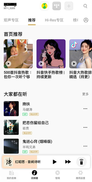 QQ 音乐的优势在于庞大的华语曲库,对于常听中文流行、摇滚或古典跨界的用户来说几乎是必备。声音方面,相比 Tidal,解析与透明度略逊一筹,高频延伸不算那么细致,但在 NT-1 的演绎下依旧保持自然顺畅。人声位置略微靠前,带有一点点润色感,听流行歌曲时特别讨喜,会比较厚实饱满。虽然细节还原不及 Tidal,但整体氛围感更接近一般烧友熟悉的味道,听起来耐听,用QQ听流行华语歌很合适,可惜NT-1目前还没有支持KKBOX。